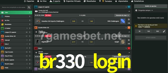 O br330 login oferece uma grande seleção de opções de apostas em e-sports com probabilidades competitivas